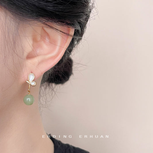 C廠【4305】真貝殼天然石鍍14K文藝手工藝設計感蝴蝶耳環女清新輕奢風耳環 24.06-2