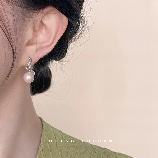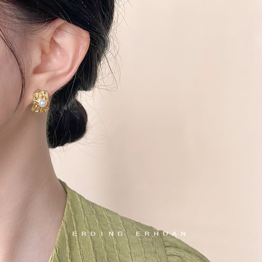 C廠【4399】法式文藝褶皺肌理感耳環復古高級感輕奢百搭珍珠不規則通勤耳飾品 24.12-1
