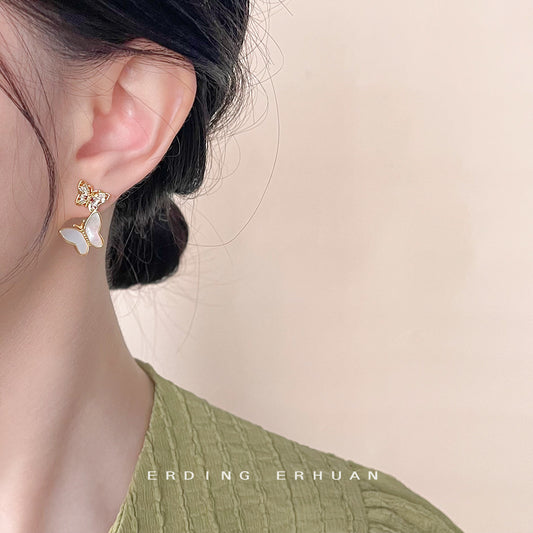 C廠【4396】真貝殼微鑲鋯石鍍14K蝴蝶銀針耳環氣質優雅甜美通勤耳環耳飾 24.07-1