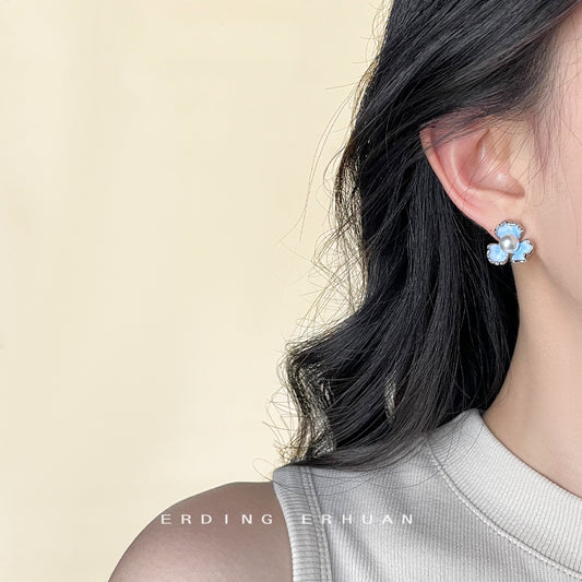 C廠【4401】鳶尾花森系清新甜美立體漸層淺藍色銀針花朵耳環耳飾耳環 24.06-4