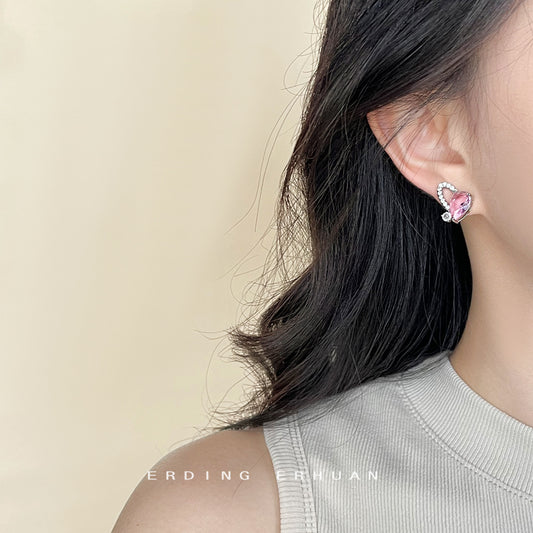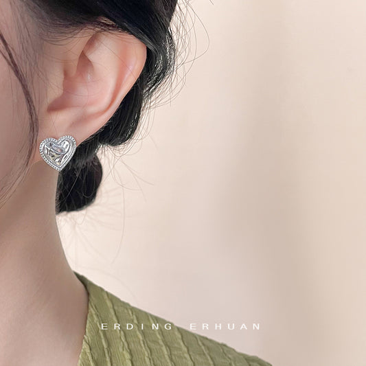 C廠【4389】原創設計~微鑲鋯石不規則個性甜酷風ins小眾設計銀針愛心耳環 24.06-4