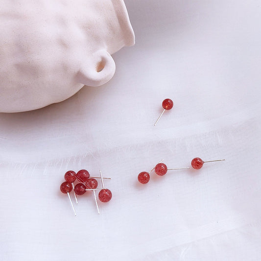 C廠【450】百搭天然草莓晶迷你小耳環清新甜美極簡圓形高級感氣質小巧耳飾女 24.08-1