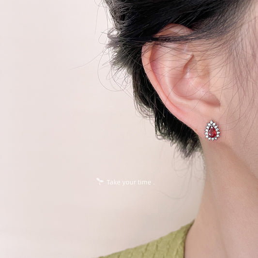 C廠【4506】高品質時尚通勤微鑲鋯石酒紅色水滴耳環鍍14K簡約高級感耳飾 24.08-2