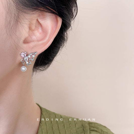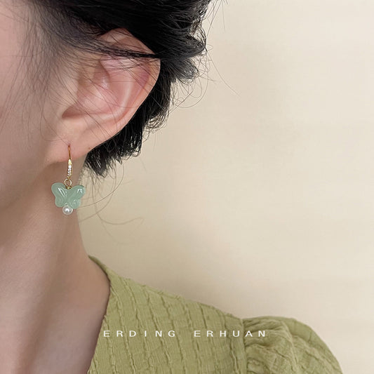 C廠【4512】新中式國潮氣質玻璃水晶蝴蝶微鑲鋯石耳環ins民族風手工耳飾 24.07-2