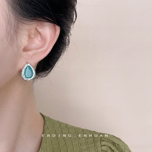 C廠【4528】高級感輕奢風湖水藍水滴銀色耳環簡約氣質優雅耳環飾品 24.07-4