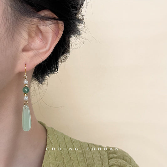 C廠【4511】原創設計手工作品長綠瑪瑙玻璃水晶耳環新中式宮廷耳飾飾品 24.07-2