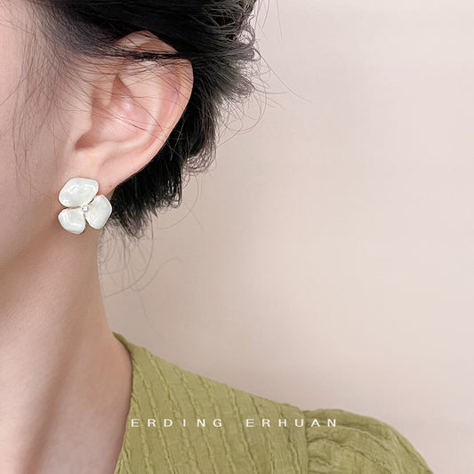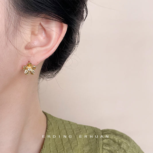 C廠【4523】極簡主義微鑲鋯石鍍14K花朵耳扣女氣質簡約日常通勤耳飾飾品 24.07-3