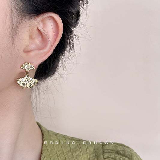 C廠【4520】升級版鍍18K真金加厚微鑲鋯石銀杏葉氣質優雅輕奢風耳環耳環 24.07-2
