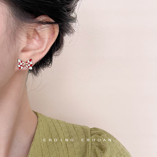 C廠【4526】度假風滴油蝴蝶結鍍14K耳環清新甜美簡約耳飾飾品 24.07-4