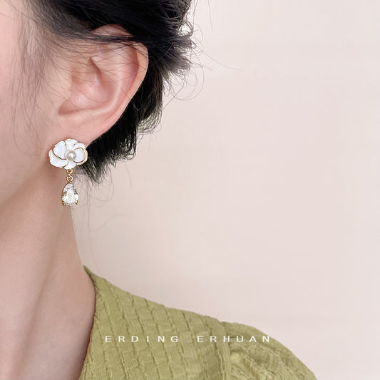 C廠【4508】茶花系列~微鑲鋯石鍍14K手工滴油花朵鋯石耳環女氣質優雅耳環 24.08-1