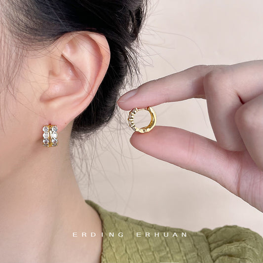 C廠【4519】升級版鍍18K真金加厚微鑲鋯石圓形幾何重工質感耳扣通勤圓形耳飾 24.07-2