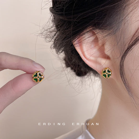 C廠【4522】升級版鍍18K真金加厚花朵幾何微鑲鋯石綠耳環女時尚通勤簡約耳飾 24.07-2