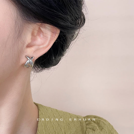 C廠【4664】時尚通勤高級感簡約風幾何立體交叉鍍14K耳環女小眾設計耳飾 24.08-1