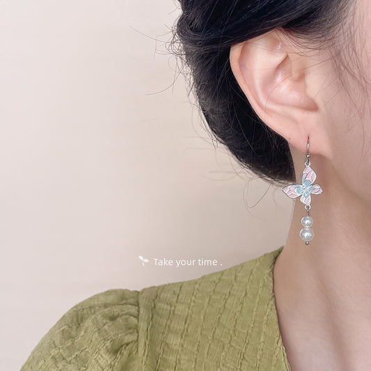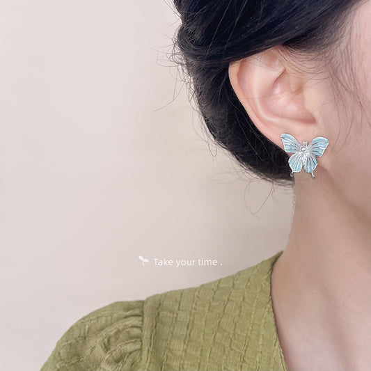 C廠【4693】法式復古油畫質感文藝滴油蝴蝶幾何耳環女中古風新款耳環耳環 24.08-4