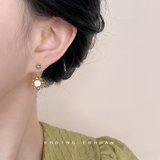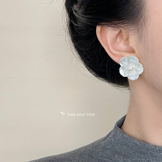 C廠【4678】真貝殼雕刻花朵耳環時尚通勤高級感氣質優雅耳環2024全新耳環 24.08-2