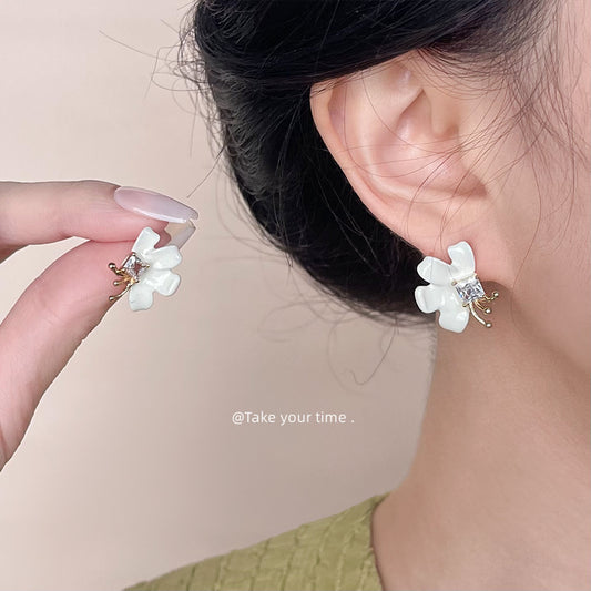 C廠【4697】時尚通勤鑲嵌鋯石優雅氣質手工滴油花朵耳環女2024年新款耳環耳環 24.08-3
