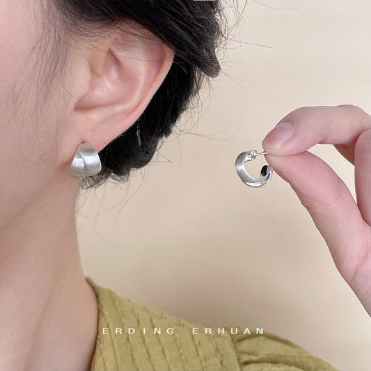 C廠【4666】時尚通勤輕奢風拉絲質感鍍14K霧面霧面幾何重疊耳環耳飾 24.08-1