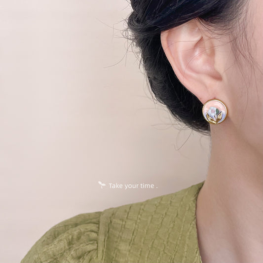 C廠【4691】清新甜美手工滴油圓形幾何花朵耳環女鍍14K優雅耳環飾品 24.08-3