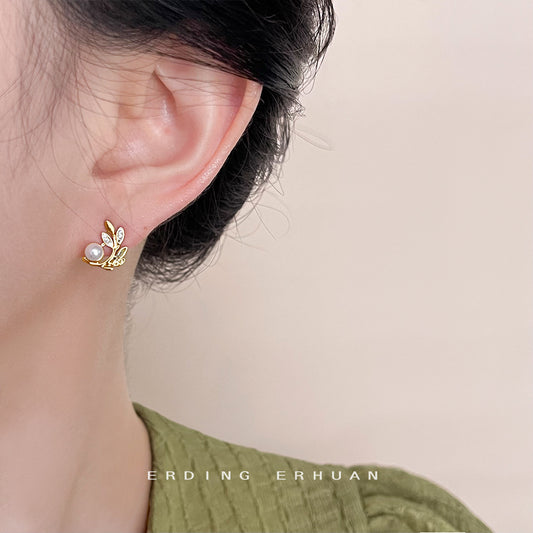 C廠【4675】微鑲鋯石鍍14K小眾設計師麥穗款耳環女時尚通勤小巧耳飾飾品 24.08-1