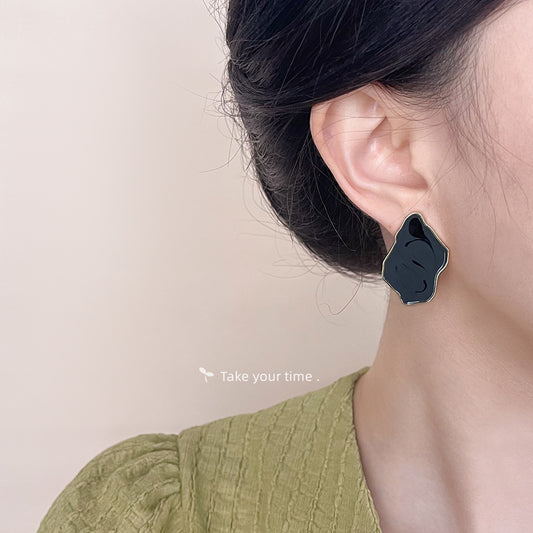 C廠【4694】文藝復古中古風鍍14K不規則設計師款滴油灰色高級感耳飾耳環 24.09-2