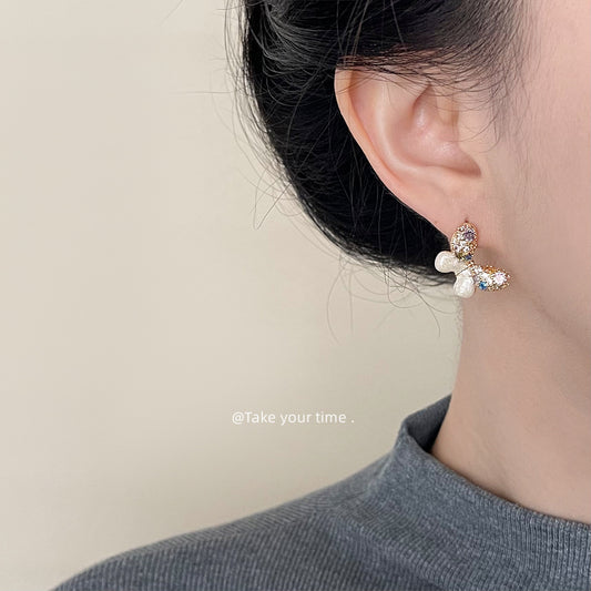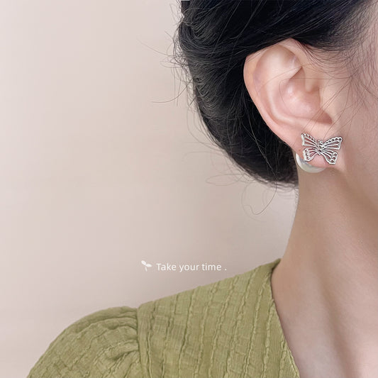 C廠【4699】時尚優雅清新甜美蝴蝶一款兩戴通勤百搭珍珠耳環女高級感耳環 24.08-3