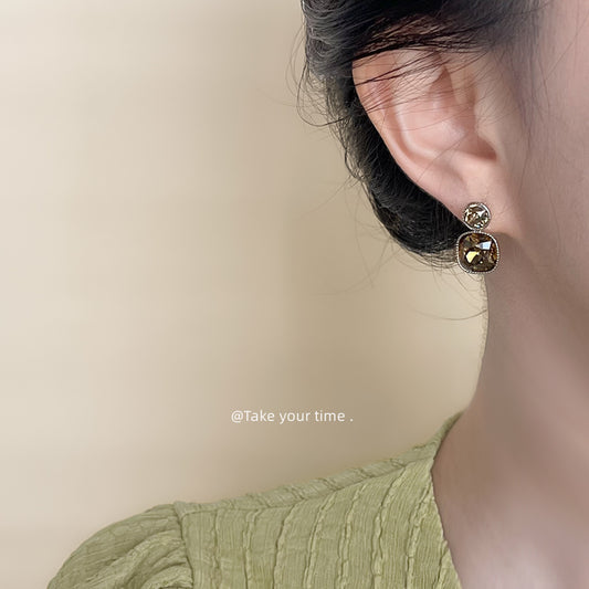 C廠【4722】實物很閃玻璃水晶清新甜美優雅輕奢風異形不規則耳環新耳飾 24.08-3