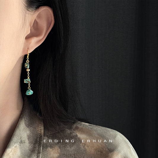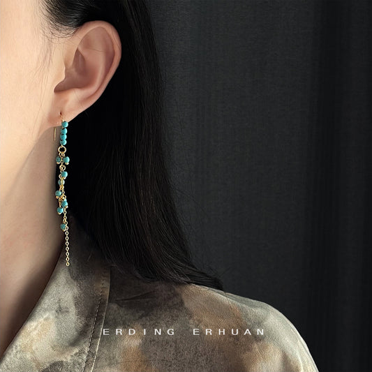 C廠【4723】文藝復古手工藝設計感長款流蘇合成綠松石民族風耳飾新款耳環女 24.08-3