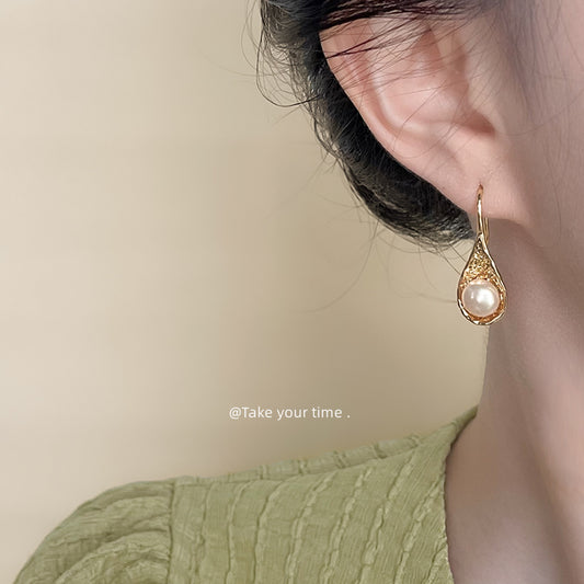 C廠【4734】淡水珍珠高級感鍍14K時尚通勤氣質優雅簡約耳環水滴耳環飾品 24.10-4