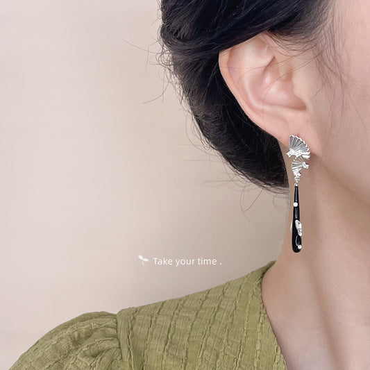 C廠【4721】個性甜酷風新中式長版扇子耳飾2024年新款高級感耳環飾品 24.08-3
