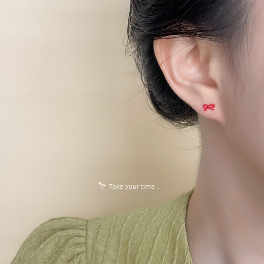 C廠【4737】安可拉紅迷你版簡約小巧通勤蝴蝶結耳環滴油耳飾飾品 24.08-4