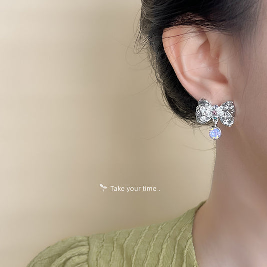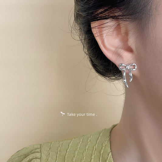 C廠【4736】清新甜美液態通勤蝴蝶結耳環氣質簡約2024年全新耳環飾品 24.08-4
