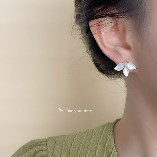 C廠【4733】真貝殼時尚通勤高級感輕奢風鍍14K優雅葉花耳環氣質耳飾 24.09-1