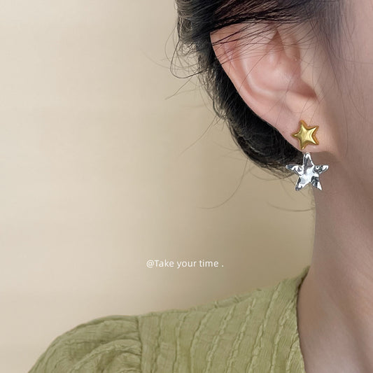 C廠【4739】一款兩戴925銀針鍍14K雙拼色個性小眾設計師星星液態耳環耳飾 24.10-2