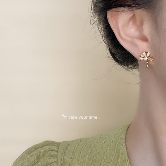 C廠【4730】微鑲鋯石玻璃貓眼石鍍14K銀杏葉耳環 氣質簡約優雅百搭輕奢風耳飾 24.10-2