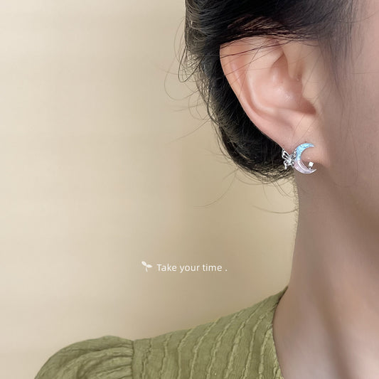 C廠【4728】小眾設計師款甜酷風月亮液態蝴蝶耳環女個性網紅新款耳環飾品 24.08-4
