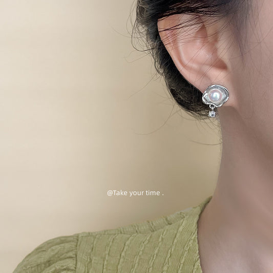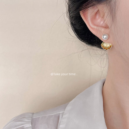 C廠【4748】玻璃施家珍珠鍍14K高級感輕奢風一款兩戴海貝造型耳環女簡約耳飾 24.08-5