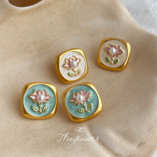 C廠【4758】淡水珍珠中古風油畫系列巴洛克新中式國風耳環時尚花朵耳環女耳環 24.08-4