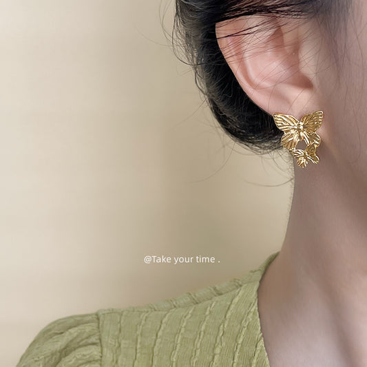 C廠【4752】高級感時尚通勤簡約百搭液態鍍14K蝴蝶耳環女個性小眾設計師耳飾 24.08-4