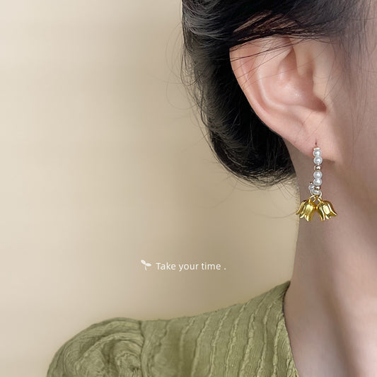 C廠【4743】法式霧面鈴蘭花手作設計感鍍14K霧面小眾設計師耳環耳環 25.01-3