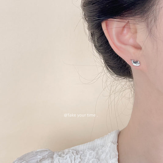 C廠【4771】微鑲鋯石簡約通勤迷你版小鯨魚耳環女氣質小清新耳環學生飾品 24.09-1