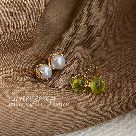 C廠【4754】時尚通勤高級感簡約風鍍14K圓形幾何珍珠耳環女氣質優雅新款耳環 24.08-4