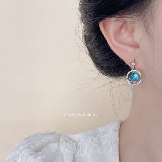 C廠【4769】微鑲鋯石藍色星球個性ins設計師款耳環2024年新款耳環 24.08-5