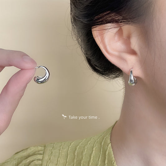 C廠【4756】時尚通勤鍍14K高級感輕奢風簡約百搭新款幾何豆耳環女水滴耳飾 24.09-1