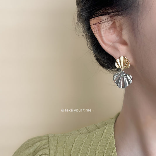 C廠【4749】跨國復古時尚歐美鍍14K雙色電鍍幾何銀杏葉秋款耳環耳環飾品 24.08-4