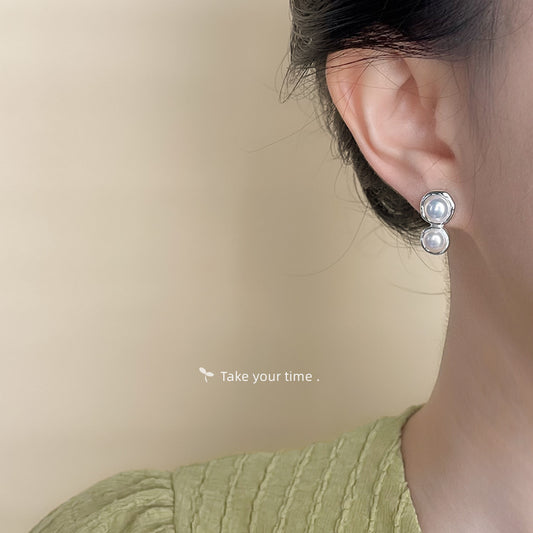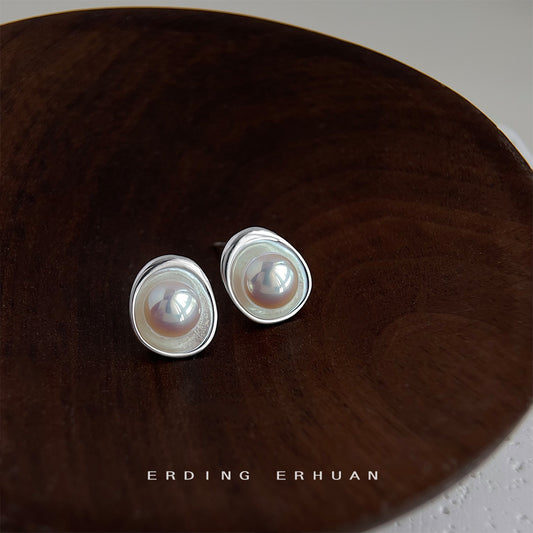 C廠【4740】馬貝質感輕奢風簡約百搭時尚通勤幾何珍珠耳環女氣質優雅耳環耳環 24.08-4