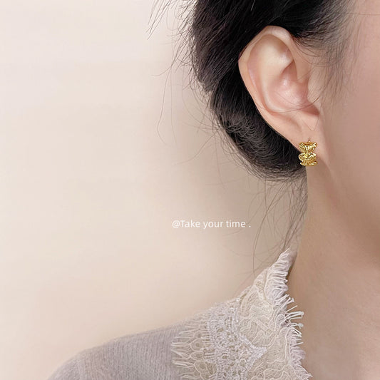 C廠【48】復古港風不規則手工棕色系耳環法式優雅金屬感錘紋大氣高級感耳飾 24.03-3