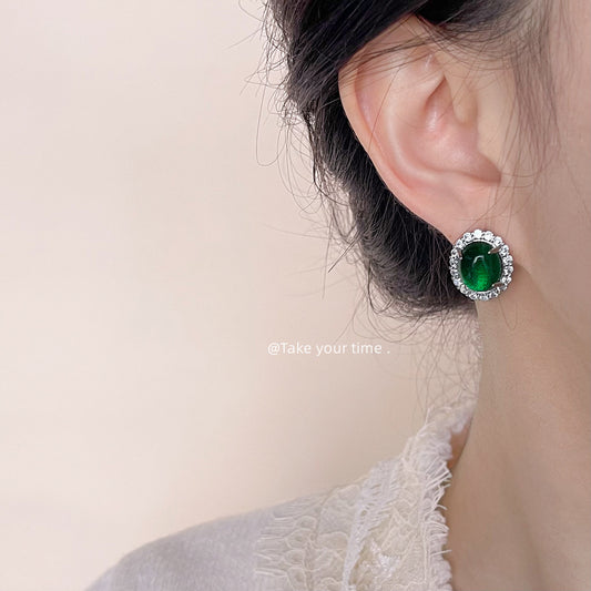 C廠【4923】實物看起來很貴~珠光寶氣橢圓微鑲鋯石鴿子蛋形狀耳環女氣質耳飾 24.09-4
