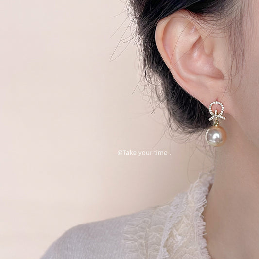 C廠【4901】微鑲鋯石鍍14K優雅氣質清新甜美新款耳飾 珍珠耳環 24.09-4