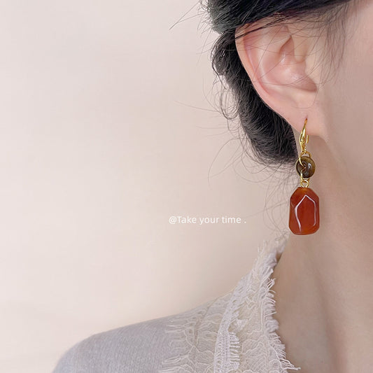 C廠【4925】美拉德琥珀色鍍14K原創手工藝設計耳環女文藝復古秋冬 新款耳飾 24.09-4