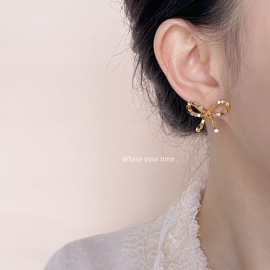 C廠【4927】時尚通勤設計師款高級感鍍14K立體蝴蝶結耳環女耳飾新款飾品 24.09-4